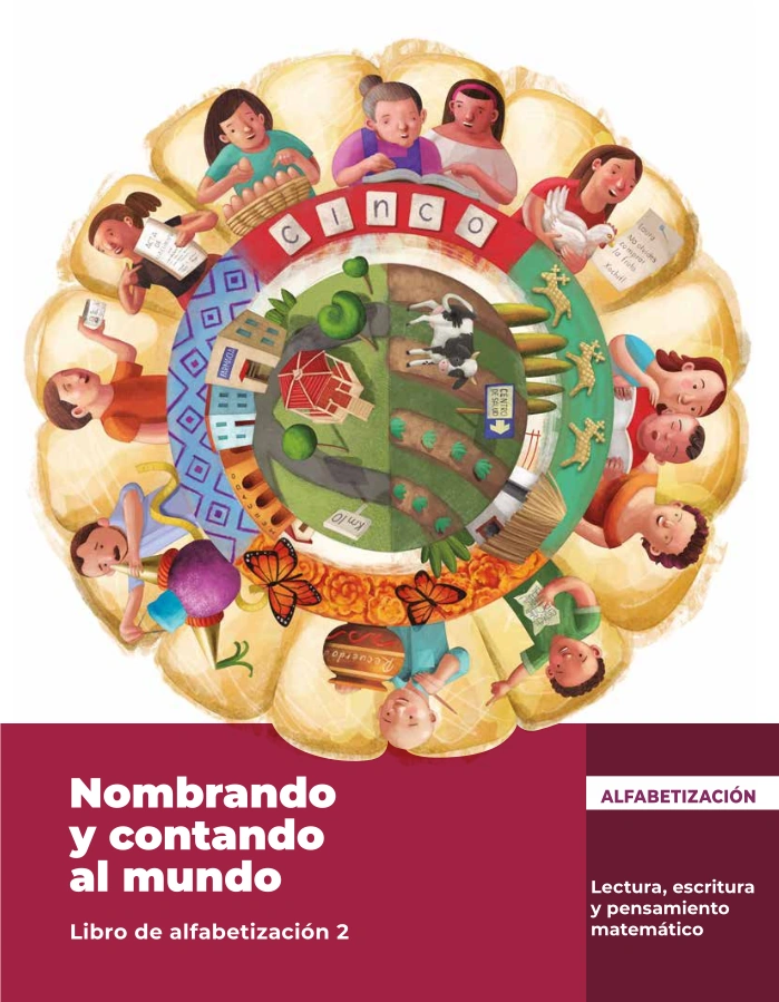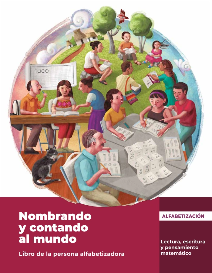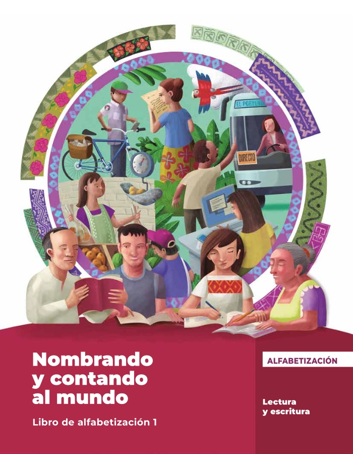 Los libros Nombrando y contando al mundo 1 y 2 ofrecen una formación integral en alfabetización y matemáticas. El primer tomo se enfoca en el reconocimiento de letras, formación de sílabas y lectura inicial mediante ejercicios de trazado y asociación imagen-palabra. El segundo profundiza en la utilidad social de la escritura, abordando la identidad legal, trámites, proyectos comunitarios y la interpretación de croquis. En el área numérica, desarrollan habilidades para contar, medir, calcular y organizar elementos. Finalmente, el Libro de la persona alfabetizadora es una guía que orienta el acompañamiento pedagógico, fomentando la autonomía y la evaluación continua.